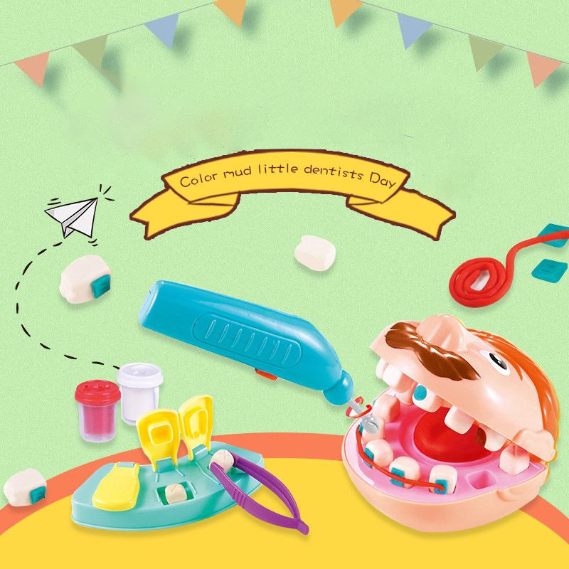 Espectacular juego de recreación para niños de masa de arcilla de dentista. con accesorios para que los niños puedan formular y desarrollar toda su creatividad.