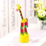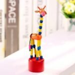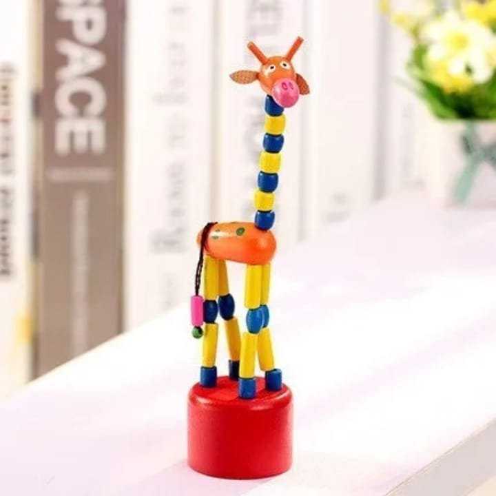Marioneta de baile de jirafa de madera, Figurita de animal con resorte
