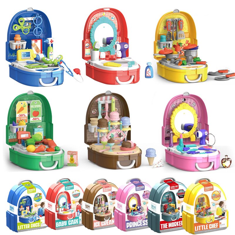 Maleta Mochila variedad de diseños: utensillos cocina, Set de Maquillaje para Niñas, set herramientas, set heladería, set doctor, set supermarket.