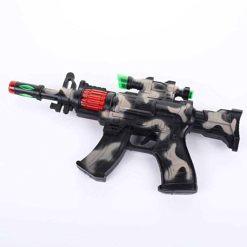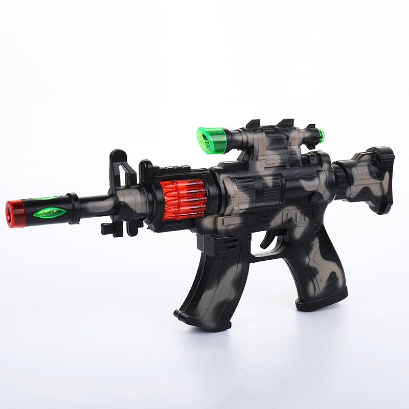 Divertida pistola de juguete para niños con luz y sonido estilo metralleta con diseño camuflaje.